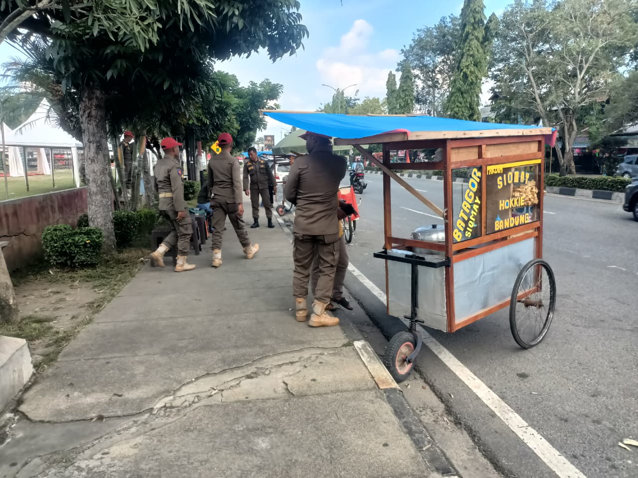 Kampar – Satuan Polisi Pamong Praja (Satpol PP) Kabupaten Kampar menertibkan sejumlah pedagang yang berjualan di kawasan Lapangan Merdeka Bangkinang, Kamis (5/2/2026).